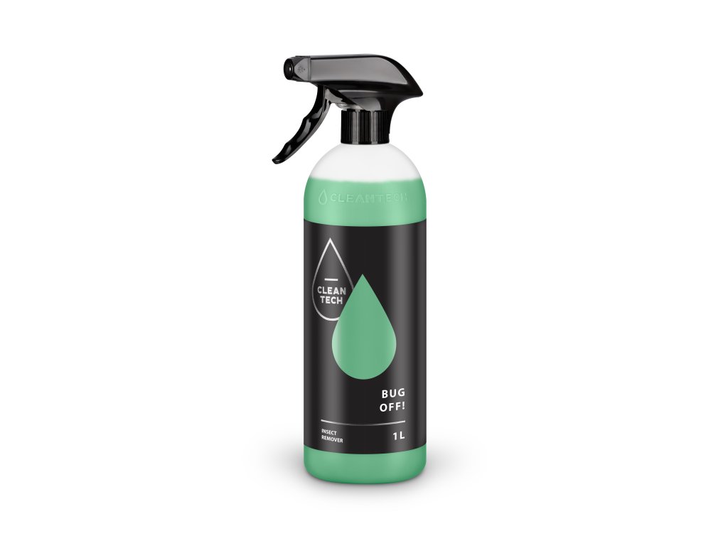 CleanTech Bug Off - bezpečný pro lak a autodíly, odstraňuje zbytky hmyzu a ptačí trus. Jedinečné složení přípravku umožňuje snadno, rychle a efektivně očistit lak a další povrchy vozidla od jakékoli organické kontaminace, která může trvale poškodit strukturu laku. Receptura přípravku umožňuje získat alkalický nebo neutrální produkt v závislosti na ředění. Díky tomu bude perfektní jak pro průběžnou péči, bez poškození vosků, tak i pro silné nečistoty a plnou dekontaminaci. Při nižších koncentracích může být nutné opakovat několikrát.
