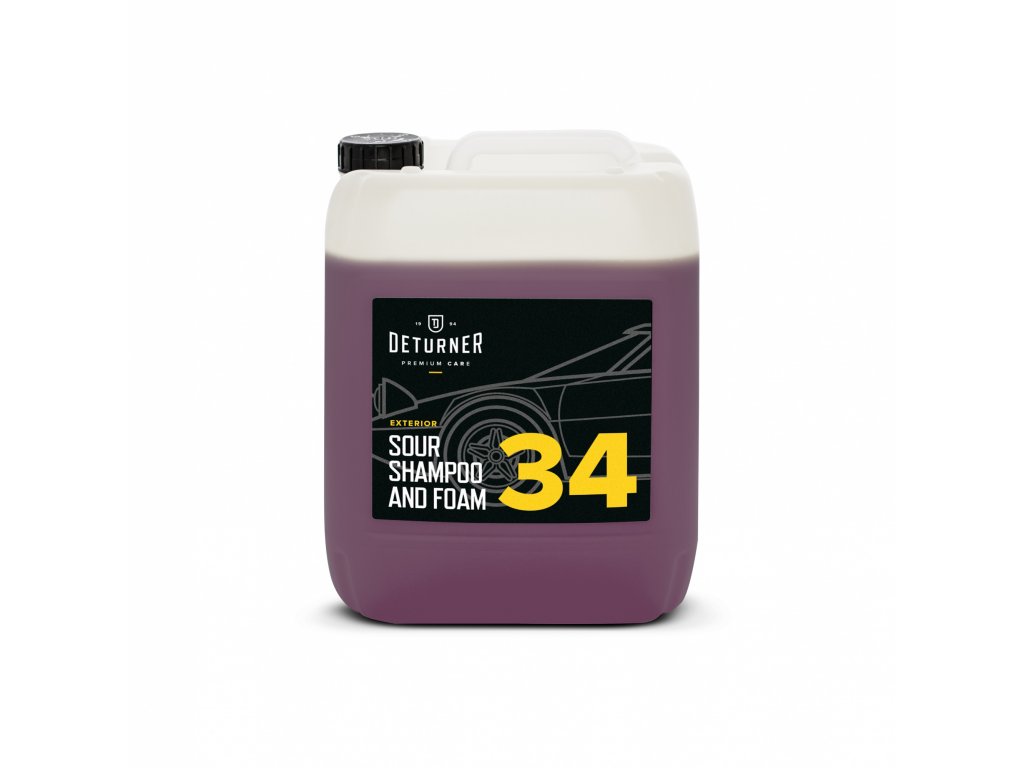 Deturner Sour Shampoo & Foam - je účinný přípravek, který lze použít jako autošampon nebo aktivní pěnu s kyselým pH. Změkčuje nečistoty a účinně rozpouští atmosférické a vápenné usazeniny, díky čemuž se skvěle hodí k odstranění špinavých křemenných a keramických povlaků i kvalitních tvrdých vosků. Může být použit jako kyselý šampon nebo aktivní pěna s použitím vhodných koncentrací.