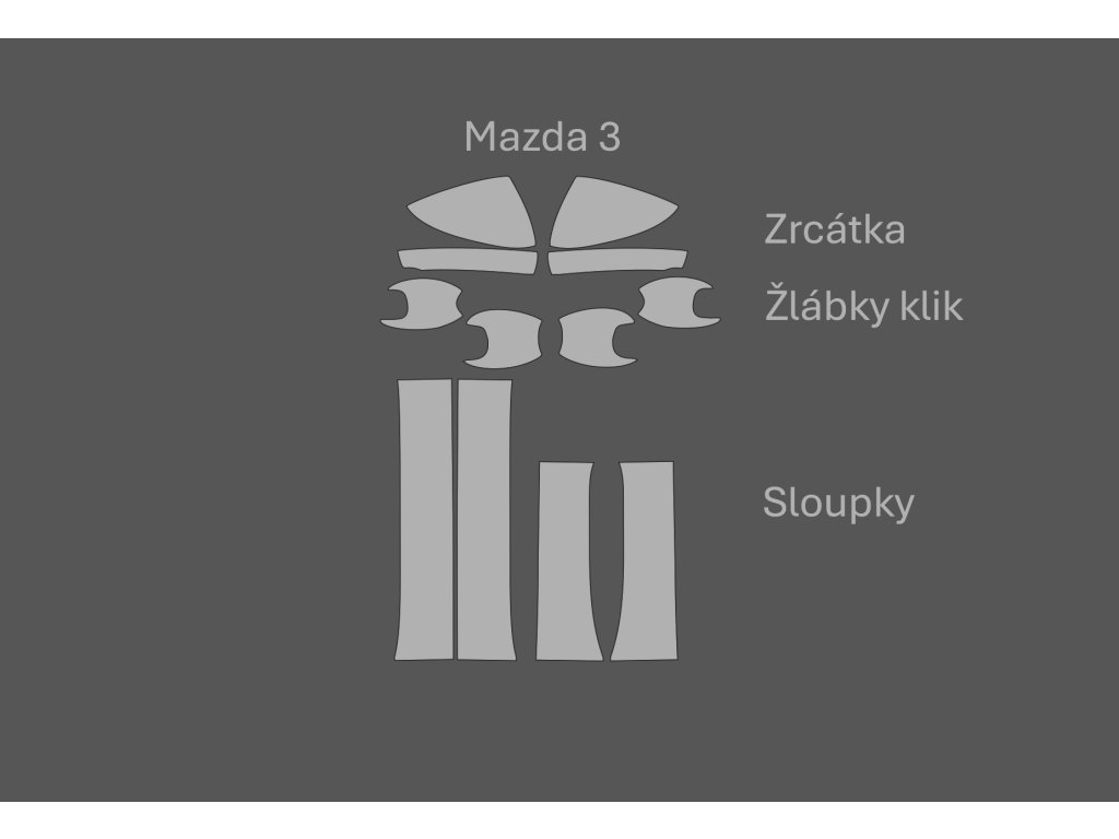 JEM PPF předřezaná fólie zrcátka, žlábky klik a sloupky Mazda 3 Černý lesk