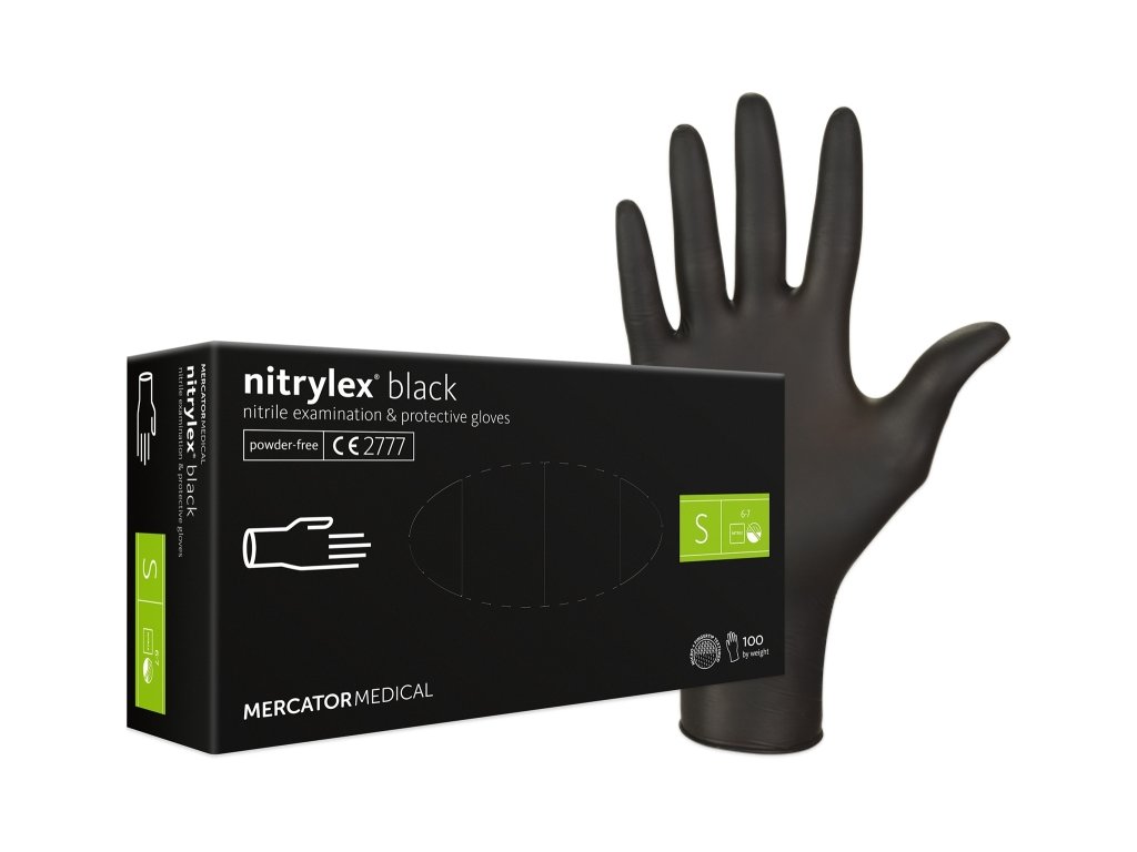 Nitrilové jednorázové ochranné rukavice NITRYLEX PF BLACK jsou bez pudru, nesterilní. Mají rolovaný okraj, který zachytí možné tekoucí kapky. Rukavice NITRYLEX PF BLACK sedí na ruce jako druhá kůže. Texturovaný povrch navíc poskytuje vynikající cit doteku a spolehlivý úchop předmětů. Nitrilové rukavice se vyznačují nejlepší mechanickou a chemickou odolností, jsou hypoalergenní (nezpůsobují alergické reakce). Vhodné pro styk s potravinami. AQL 1.0. Délka 24 cm.