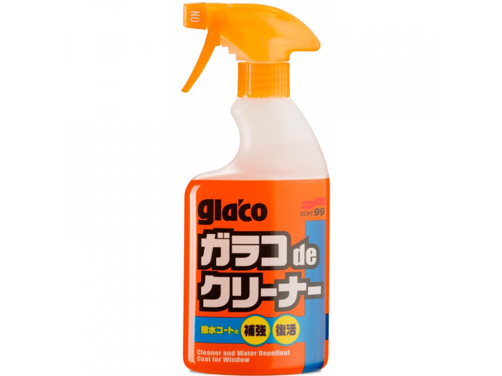 - Hľadáte rýchly spôsob, ako odstrániť nečistoty z okien a zároveň vám umožní užiť si efekt „neviditeľných stieračov“? Použite Glaco De Cleaner, ktorý po nastriekaní na sklo rýchlo odstráni nečistoty, vtáčí trus atď. Navyše zaistí jeho dlhotrvajúci čistý efekt. Tento prípravok vám tiež umožní vychutnať si vynikajúcu viditeľnosť pri daždi od rýchlosti 60 km/h! Vodoodpudivého efektu si všimnete hneď, ako na oknách, tak v zrkadlách. Prípravok je extrémne univerzálny. Chráni sklenené povrchy bez ohľadu na počasie. Oceníte ho aj v zime, pretože zabraňuje zamŕzaniu okien vplyvom sneženia alebo mrazu. Ľahko sa používa aj na minivany alebo iné veľké autá, vďaka špeciálne navrhnutej fľaši a účinnému dávkovaču.
