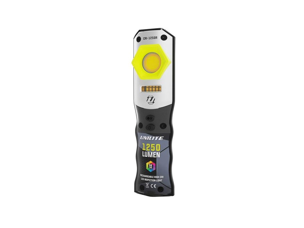 Unilite CRI-1250R je super jasné multifunkčné 1250 lumenové kontrolné svietidlo s vysokým CRI 96+ a tromi rôznymi farebnými teplotami - 2500K teplé biele / 4500K chladné biele / 6500K denné svetlo. Využíva rýchlejšie dobíjanie USB typu C. Svietidlo je odolné voči poveternostným vplyvom a má krytie IP65. Je vyrobené z vysoko pevného polykarbonátu a robustného, vysoko kvalitného liateho hliníka. Vďaka integrálnemu zavesovaciemu háku a silným magnetom v základni a chrbte je svietidlo všestranné a ľahko ovládateľné za všetkých okolností. Vďaka ergonomickej konštrukcii a vytvarovaniu padne presne do dlane.