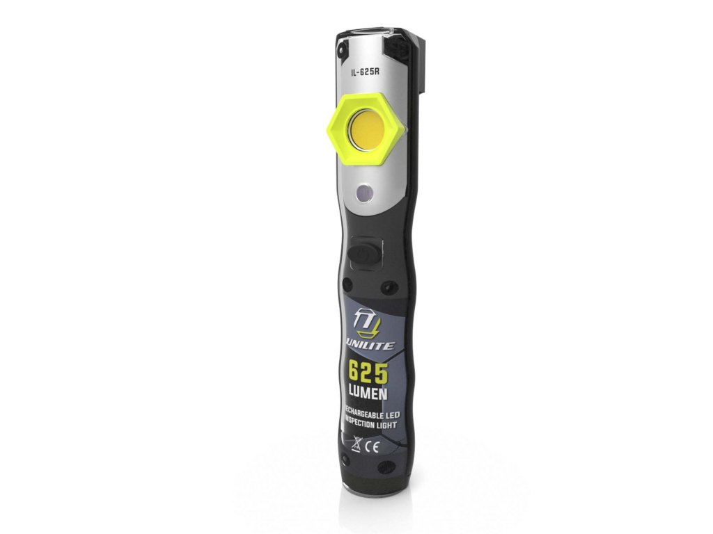 Unilite IL-625R je kontrolné ručné svietidlo s výkonom 625 lúmenov. Je plne odolná voči poveternostným vplyvom a má krytie IP65. Je vyrobená z ultra tvrdého polykarbonátu a vysoko kvalitného liateho hliníka, takže ustojí drvivú väčšinu pádov na tvrdú zem. Má integrovaný magnetický klip a je rýchlo nabíjateľná pomocou USB typu C. Ďalšie svetlo v hlave svietidla vytvára 200 lúmenov ostrého chladného bieleho svetla. Skutočne univerzálne prenosné svetlo, ktoré je možné použiť pri všetkých typoch vnútorných aj vonkajších použitiach.